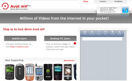 Con Avot mV podrás buscar videos para móviles desde servicios tales como Google Vídeo, DailyMotion y varios más, y reproducirlos en tu teléfono celular.