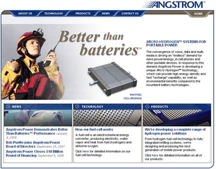 La empresa Angstrom Power se encuentra desarrollando este tipo de baterías hechas con hidrógeno. Según la empresa, esta batería se cargaría en 10 minutos y ofrece el doble de capacidad que las convencionales.
