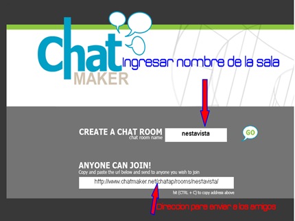 ChatMaker es una aplicación online gratuitas que te permite crear una sala de chat en tan solo segundos. Funciona de forma muy sencilla, solo ingresas el nombre que tendrás tu sala de chat y automáticamente te brindan un enlace el cual enviarás a tus amigos a modo de invitación para que puedan unirse a ella. Lo mejor de todo, es que no te piden registro alguno para poder disfrutar del servicio.