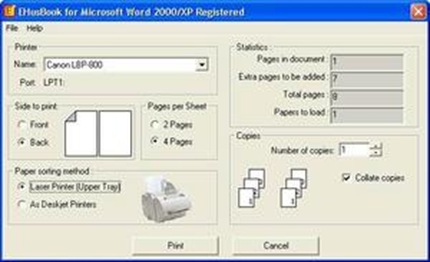 EHusBook es un plugin para Microsoft Word que posibilita al usuario imprimir sus documentos con formato de libro o folleto. Esta herramienta te resultará extremadamente sencilla y cómoda para todos aquellos documentos que deseas encuadernar, ya que automáticamente el programa hace la distribución de las páginas imprimiéndolas correctamente para el posterior encuadernado.