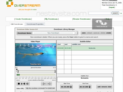 Overstream es una herramienta online para agregar subtítulos a vídeos que se encuentran alojados en algún servidor como Youtube, Google Vídeo, MySpace Vídeo, DailyMotion, etc. Una vez creado los subtítulos proporciona un enlace para poder compartir el vídeo, solo tienes que registrarte, no demora mucho .
