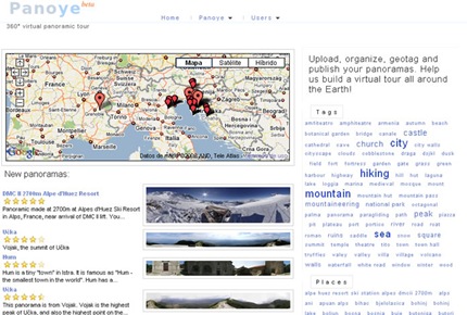 Panoye es un sitio web donde los usuarios pueden subir, organizar y etiquetar las vistas panorámicas de 360º. Las fotografías se pueden votar, incluyen una pequeña descripción, clasificación por tags y lugares, sitios cercanos o la situación exacta gracias a Google Maps de la localización.