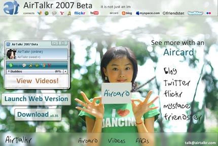 Airtalkr es una aplicación web que te brinda servicio de mensajería instantánea como una opción más a otros servicios como MSN, eBuddy, KoolIM, etc.
