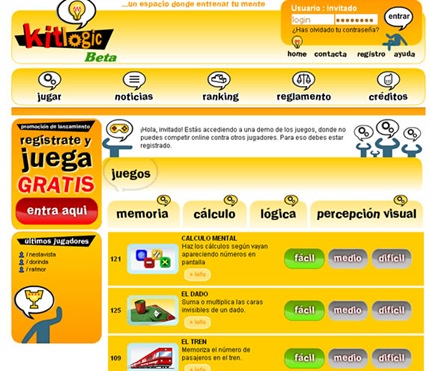 kitlogic es un sitio web que te permitirá ejercitar la mente de manera online mediante los juegos que en ella se alojan, así llegaras a tener una gran habilidad mental y esto lo obtendrás como jugando.