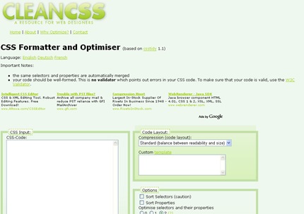 CleanCSS es una aplicación online para limpiar y optimizar el código CSS, el procedimiento es sencillo de utilizar, se introduce el código o se sube el archivo .CSS, se eligen los parámetros a optimizar y listo. Esta aplicación modifica lo que considera adecuado para obtener un archivo con un menor peso y por consecuencia, hace que tu sitio web sea más liviano.