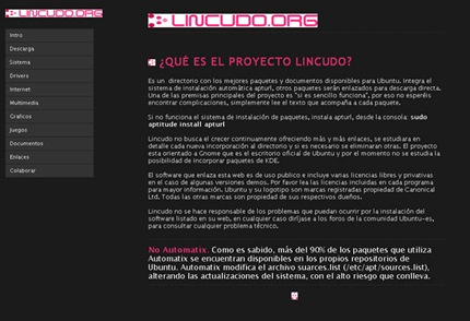 Lincudo es un sitio web donde encontrarás una cantidad apreciable de recursos para Ubuntu. Como dicen en su sitio, Lincudo no está buscando el crecer continuamente ofreciendo más y más enlaces, sino que nos ofrecerá un buen servicio estudiando al detalle cada nueva incorporación al directorio de recursos, e inclusive si es necesario se eliminarán las que no sean útiles.