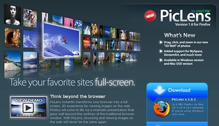 PicLens : Extensión de Firefox para ver tus imágenes en 3D (Download)