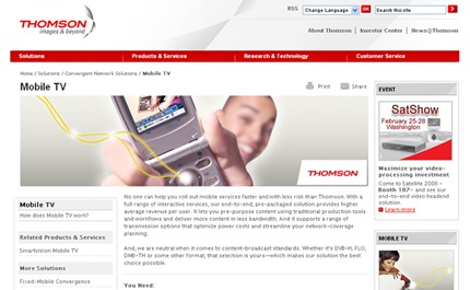 grupo francés de electrónica Thomson está proporcionando una solución completa a ATV, compañía que forma parte del grupo latinoamericano de medios de comunicación Albavisión, en el marco de una prueba de televisión móvil en Perú y en Guatemala. El servicio, el primero de su tipo en América Latina, estará listo para el mercado comercial en junio del 2008. Según Thomson, este servicio se compone actualmente de cuatro cadenas de televisión en directo, retransmitidas por medio de la normal de difusión DVB-H.