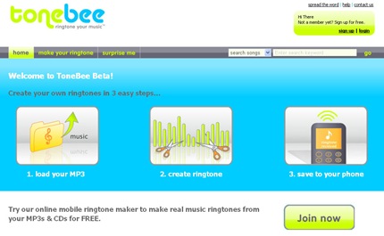 Tonebee es una aplicación online que te permite crear melodías para tu celular. Para utilizar este servicio, primero deberás registrarte, luego subirás el archivo MP3 al sitio web y por último seleccionarás la parte de la canción que desees forme parte de tu melodía o ringtone y eso es todo.
